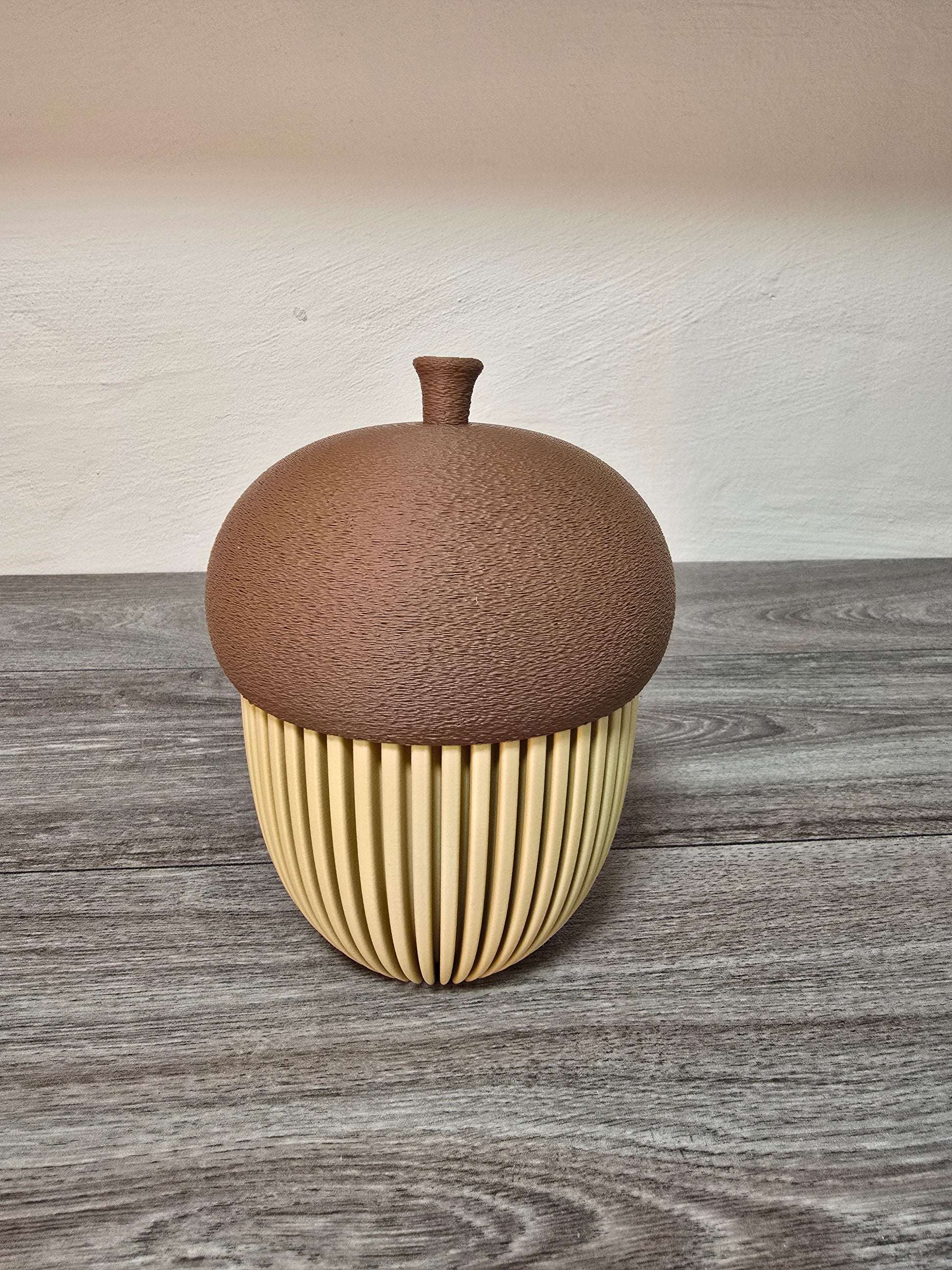 Diese moderne Eichel-Dekoration bringt einen zeitgemäßen Akzent in Ihr herbstliches Ambiente. Mit klaren Linien und natürlicher Form fügt sich dieses Design harmonisch in jedes Interieur ein und schafft eine elegante Verbindung zur herbstlichen Jahreszeit. Ideal für stilbewusste Dekorateure, die natürliche Elemente mit modernem Flair verbinden möchten.