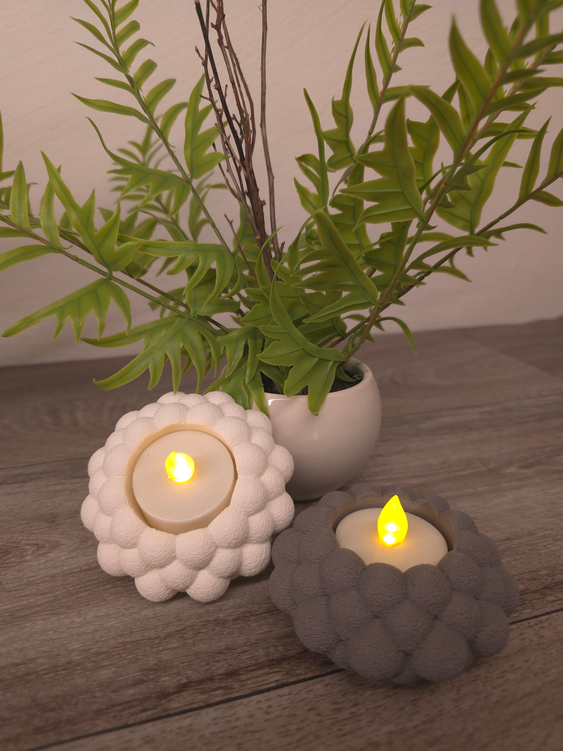 Der Teelichthalter in Kugeloptik verbindet modernes Design mit funktionaler Eleganz. Hergestellt aus hochwertigen Materialien, überzeugt er durch Stabilität und Langlebigkeit – ideal, um Ihrem Wohnambiente stilvolle Wärme zu verleihen.